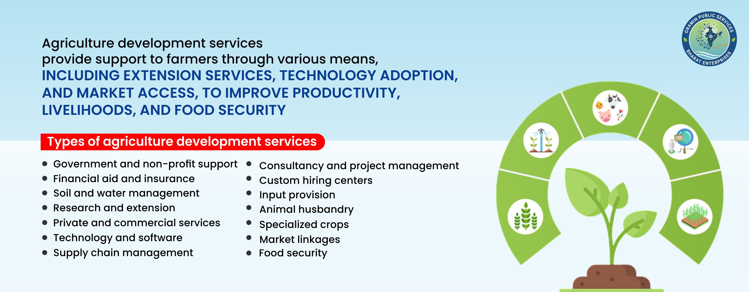 Gramin Public Services Bharat Enterprises is a multi-dimensional organization dedicated to uplifting rural communities by promoting entrepreneurship, improving healthcare access, and supporting agricultural advancement. Our mission is to create self-reliant villages by providing essential services, resources, and opportunities that help people build a better future in their own communities. We believe that true national progress begins at the grassroots level — when every village becomes a center of growth, innovation, and well-being. Through our wide range of services, we aim to connect rural citizens with modern solutions while preserving their traditional strengths and values.